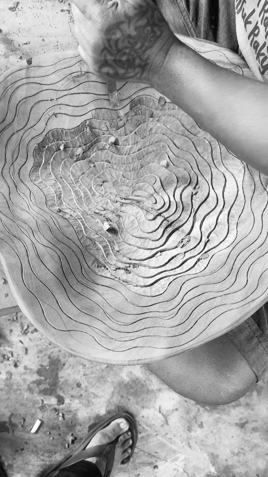Inspired by the moment a droplet touches still water, this lamp captures the expanding rhythm of ripple rings. Its irregular layers are shaped from hand-carved wood, forming organic contours arranged in a circle-like silhouette.